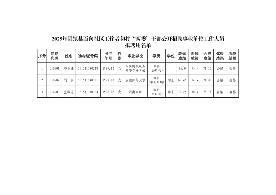 2025年固鎮(zhèn)縣面向社區(qū)工作者和村“兩委”干部公開(kāi)招聘事業(yè)單位工作人員擬聘用名單公示