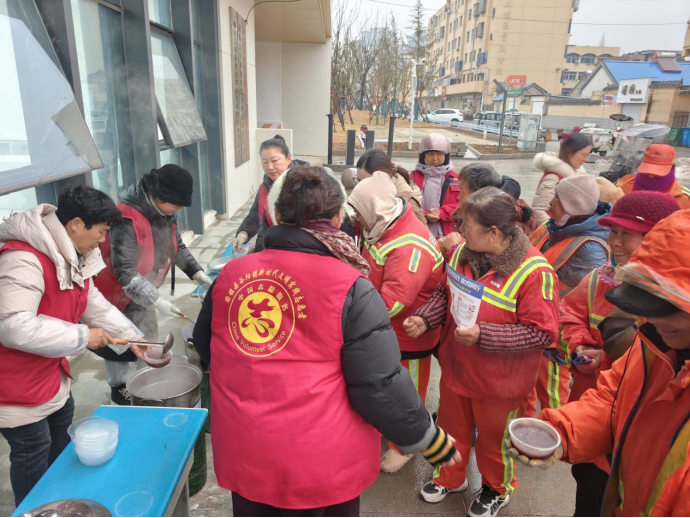 本次活動(dòng)特別聚焦環(huán)衛(wèi)工人,社區(qū)工作人員主動(dòng)將打包好的臘八粥送到正在街頭作業(yè)的環(huán)衛(wèi)工人手中?;顒?dòng)名稱中的“橙”字,取自環(huán)衛(wèi)工人的標(biāo)志性工作服顏色,寓意“誠心誠意、橙心橙意”的關(guān)愛。