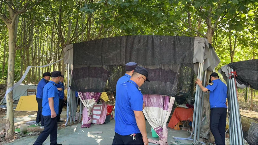 “柔性執(zhí)法”助拆除。針對老年攤主“避暑打牌”的實(shí)際需求,7月4日下午,執(zhí)法人員頂著36℃高溫,采取“宣傳+助拆”方式,逐處找到湖邊綠化帶內(nèi)的露天棋牌室攤主,宣傳普及《城鎮(zhèn)綠化管理?xiàng)l例》,耐心解釋“占綠經(jīng)營屬違法行為”,取得涉事攤主的理解;同時(shí),出動(dòng)5臺執(zhí)法車、20余名執(zhí)法隊(duì)員,幫助棋牌室攤主搬運(yùn)桌椅、拆除簡易棚,僅2小時(shí)完成1處違建拆除。