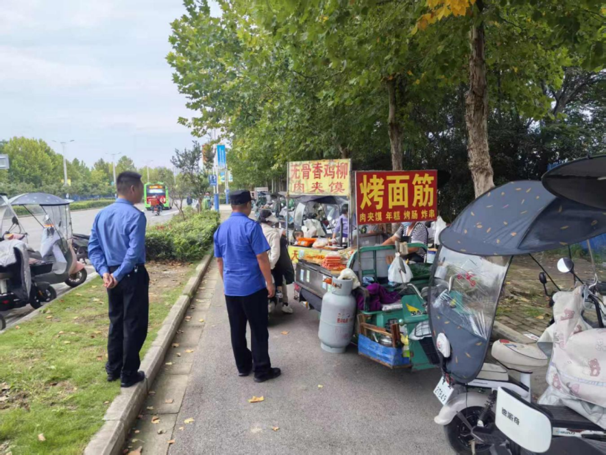 動(dòng)態(tài)巡查守護(hù)集市“整潔線”。針對(duì)集市外圍易出現(xiàn)的流動(dòng)攤點(diǎn)占道經(jīng)營(yíng)問(wèn)題,執(zhí)法人員采取“定點(diǎn)值守+動(dòng)態(tài)巡查”模式,以步行巡查方式“丈量”集市周邊每一寸空間,對(duì)黃園南路等重點(diǎn)區(qū)域的“烤面筋”“雞柳”等違規(guī)攤點(diǎn)開(kāi)展集中整治。通過(guò)耐心勸導(dǎo)與規(guī)范執(zhí)法相結(jié)合,累計(jì)勸離流動(dòng)攤點(diǎn)40余處,既維護(hù)了經(jīng)營(yíng)秩序,又凈化了集市外圍環(huán)境。