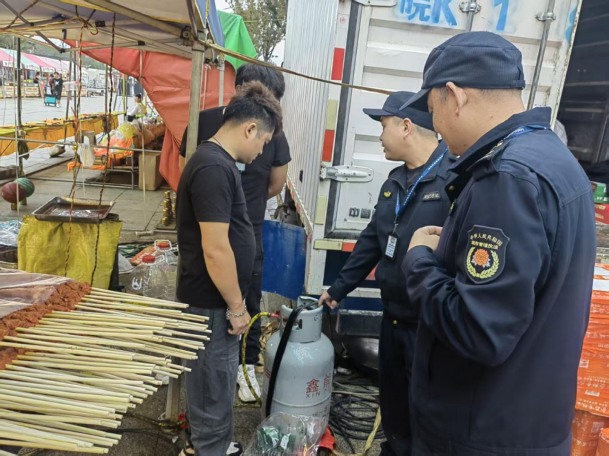 安全檢查筑牢經(jīng)營(yíng)“防火墻”。餐飲區(qū)是大集的“人氣旺地”,也是安全保障的“關(guān)鍵區(qū)”。執(zhí)法人員深入集市餐飲檔位,重點(diǎn)檢查瓶裝燃?xì)馐褂冒踩瑢?duì)燃?xì)膺B接軟管是否老化、瓶體是否在有效期內(nèi)、減壓閥是否合規(guī)等隱患進(jìn)行逐一排查,對(duì)發(fā)現(xiàn)的問(wèn)題當(dāng)場(chǎng)下達(dá)整改提示,督促經(jīng)營(yíng)戶立行立改,從源頭杜絕燃?xì)獍踩鹿?,讓游客“吃得放心”,讓商戶“?jīng)營(yíng)安心”。