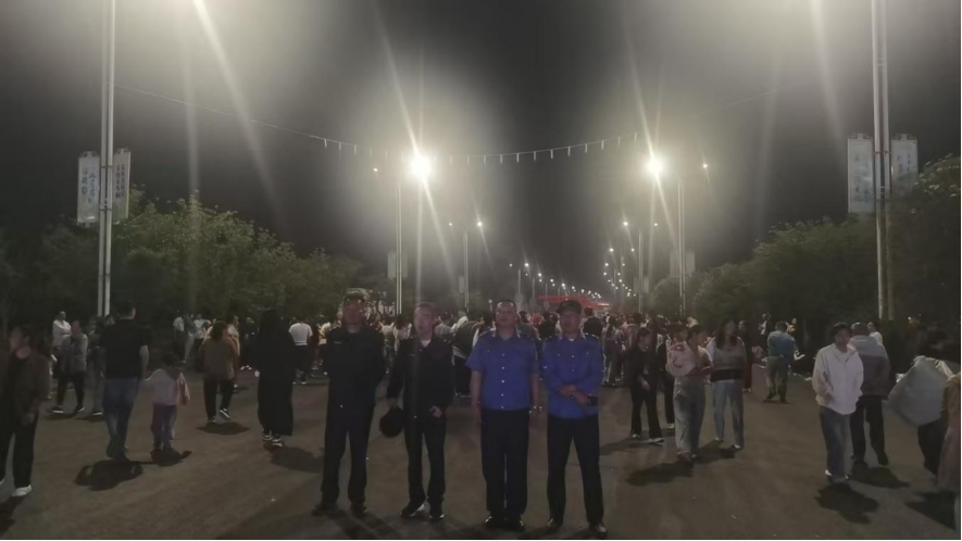 人墻守護(hù)點(diǎn)亮夜間“煙火氣”。雨停后的夜幕下,非遺打鐵花表演震撼登場(chǎng),絢爛鐵花秒變“金色煙花”綻放夜空,瞬間點(diǎn)燃全場(chǎng)氛圍,濃濃的煙火氣將現(xiàn)場(chǎng)氛圍推向頂峰,游客爭(zhēng)相定格精彩瞬間,現(xiàn)場(chǎng)人潮涌動(dòng)。為防止擁擠踩踏,執(zhí)法人員華燈之下堅(jiān)守崗位,迅速在觀演區(qū)站成“人墻”,用身體筑起安全屏障,引導(dǎo)游客有序觀演,在安全中傳遞夜間“最濃鄉(xiāng)愁”。
