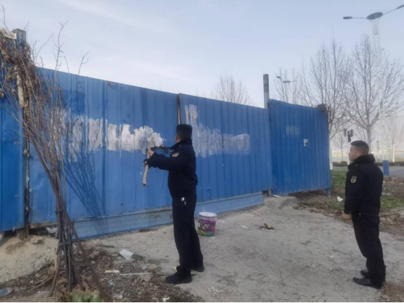 清理亂涂寫(xiě)廣告。針對(duì)創(chuàng)業(yè)路、瓦坊路、谷城路等處圍擋上亂涂寫(xiě)的叉車(chē)出租等違規(guī)廣告亂象,執(zhí)法人員攜帶白色涂料、長(zhǎng)桿滾筒等工具,對(duì)亂涂寫(xiě)點(diǎn)位進(jìn)行逐處涂抹覆蓋。整治現(xiàn)場(chǎng),執(zhí)法人員仔細(xì)排查每一處圍擋,不放過(guò)任何一個(gè)亂涂寫(xiě)痕跡,還原立面整潔底色。累計(jì)完成10余處亂涂寫(xiě)廣告的清理工作,讓原本斑駁的圍擋重新恢復(fù)整潔底色,進(jìn)一步提升了道路沿線的視覺(jué)舒適度。