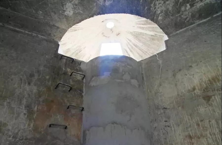 侵華日軍水牢是日軍控制固鎮(zhèn)期間,在火車站附近修建的一座關(guān)押我愛國軍民的小型監(jiān)獄。水牢占地面積約80平方米,呈圓形,內(nèi)徑9米,高4.8米,分上、下兩部分,下部為圓柱形,上部呈蘑菇形,頂部有一個直徑約20厘米的圓形瞭望孔和一個等腰梯形天窗,天窗是進(jìn)出水牢的唯一通道。牢內(nèi)以中心為基有三堵預(yù)制鋼筋混凝土墻,將牢房分為相等的三個牢區(qū),每堵墻面靠中部位置有供上下的攀手。該水牢至今保存較完整,系日本侵略中國的實物罪證。