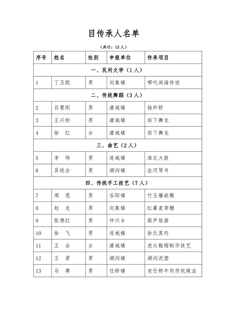 固鎮(zhèn)縣第二批縣級(jí)非遺傳承人推薦申報(bào)名單公示