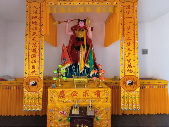 陳塘關(guān)鎮(zhèn)守李靖第三子哪吒,出世于肉蛋,7 歲時(shí)下河玩水,擺動(dòng)布兜兜, 頓時(shí)河水大作,驚動(dòng)青、白二龍。二龍遂出水大戰(zhàn)哪吒,敗逃?xùn)|海求援。東海龍王率蝦兵蟹將前來(lái)捉拿哪吒。哪吒手執(zhí)項(xiàng)圈、手鐲,取下布兜兜化作高墻,洪水始終漫不過(guò)高墻。龍王戰(zhàn)不過(guò)哪吒,便帶領(lǐng)青、白二龍?zhí)踊貣|海,老龍?zhí)稄拇似?/font>安無(wú)事。百姓為了紀(jì)念李氏父子,在陳塘關(guān)東門(mén)外建起七進(jìn)院落的陳塘關(guān)廟,塑有左手托起七級(jí)寶塔、右手按劍而立的托塔天王李靖神像,又在九灣集南興建哪吒廟,塑有三頭六臂的哪吒神像。哪吒橫眉怒目,注視河心,時(shí)刻提防青、白二龍來(lái)犯,以保護(hù)平民百姓。