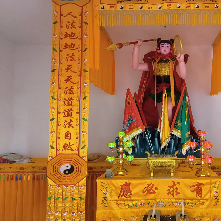 陳塘關(guān)鎮(zhèn)守李靖第三子哪吒,出世于肉蛋,7歲時(shí)下河玩水,擺動(dòng)布兜兜,頓時(shí)河水大作,驚動(dòng)青、白二龍。二龍遂出水大戰(zhàn)哪吒,敗逃?xùn)|海求援。東海龍王率蝦兵蟹將前來(lái)捉拿哪吒。哪吒手執(zhí)項(xiàng)圈、手鐲,取下布兜兜化作高墻,洪水始終漫不過高墻。龍王戰(zhàn)不過哪吒,便帶領(lǐng)青、白二龍?zhí)踊貣|海,老龍?zhí)稄拇似桨矡o(wú)事。百姓為了紀(jì)念李氏父子,在陳塘關(guān)東門外建起七進(jìn)院落的大廟,塑有左手托起七級(jí)寶塔、右手按劍而立的托塔天王李靖神像,又在九灣集南興建哪吒廟,塑有三頭六臂的哪吒神像。哪吒橫眉怒目,注視河心,時(shí)刻提防青、白二龍來(lái)犯,以保護(hù)平民百姓。